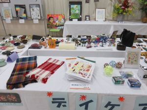文化祭では作品展示(革工芸、陶芸、手芸、書道、アート作品、生け花)と模擬店が9店舗出店していました。